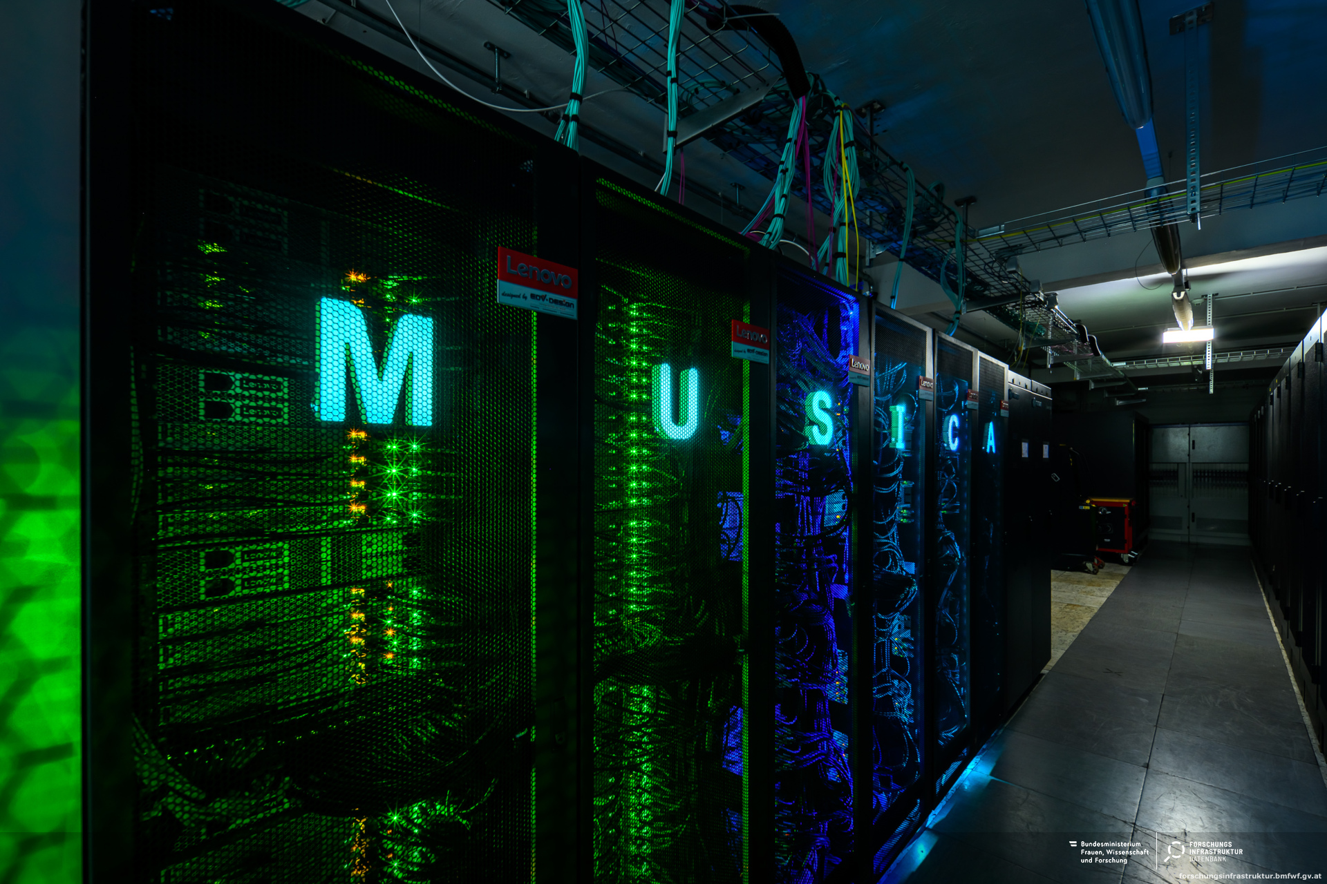 MUSICA ist ein verteilter Hochleistungsrechner an den Standorten Wien, Linz und Innsbruck. An jedem Standort befindet sich ein Rechner-Cluster. Jedes der drei Cluster besteht aus 128 (Wien: 184) einzelnen Rechnern (Knoten). Die einzelnen Rechner verfügen jeweils über 2 AMD-CPUs mit je 96 Kernen und 768 GByte Hauptspeicher. Je 80 (Wien:112) Knoten sind zusätzlich je Knoten mit 4 NVIDIA Hopper H100 GPUs ausgestattet. Insgesamt stehen 84.480 CPU-Kerne und 1088 H100 GPUs zur Verfügung. Die Knoten an einem Standort sind untereinander sowie mit den Filesystemen mit einem Hochleistungsnetz von 400 GBit/sec verbunden. Neben normaler Anbindung an ein Filesystem verfügt jeder Standort über ein Hochleistungsfilesystem mit einer Kapazität von jeweils 4 PByte und einem Durchsatz von etwa 1 TByte/sec. Die Standorte sind untereinander mit einem privaten Netzwerk von 100 Gbit/sec verbunden.