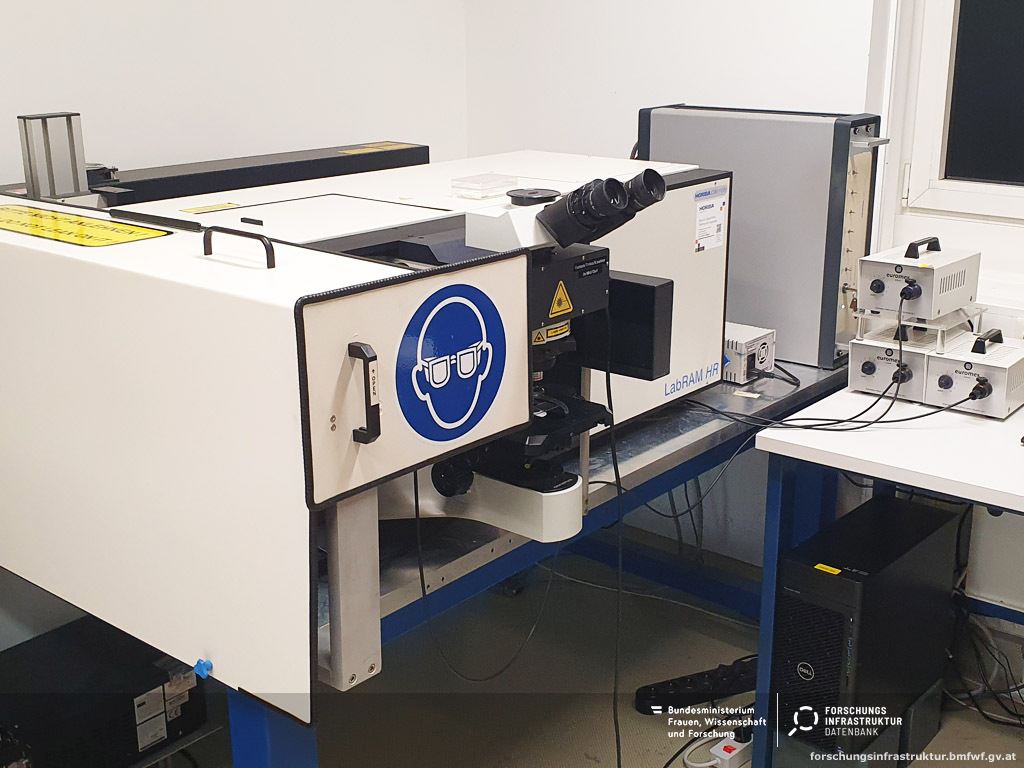 Spektroskopische Punktanalysen (Ramanspektroskopie und laser-induzierte Photolumineszenz-Spektroskopie) zur zerstörungsfreien Analyse bis zu einem Mikrometer Auflösung.