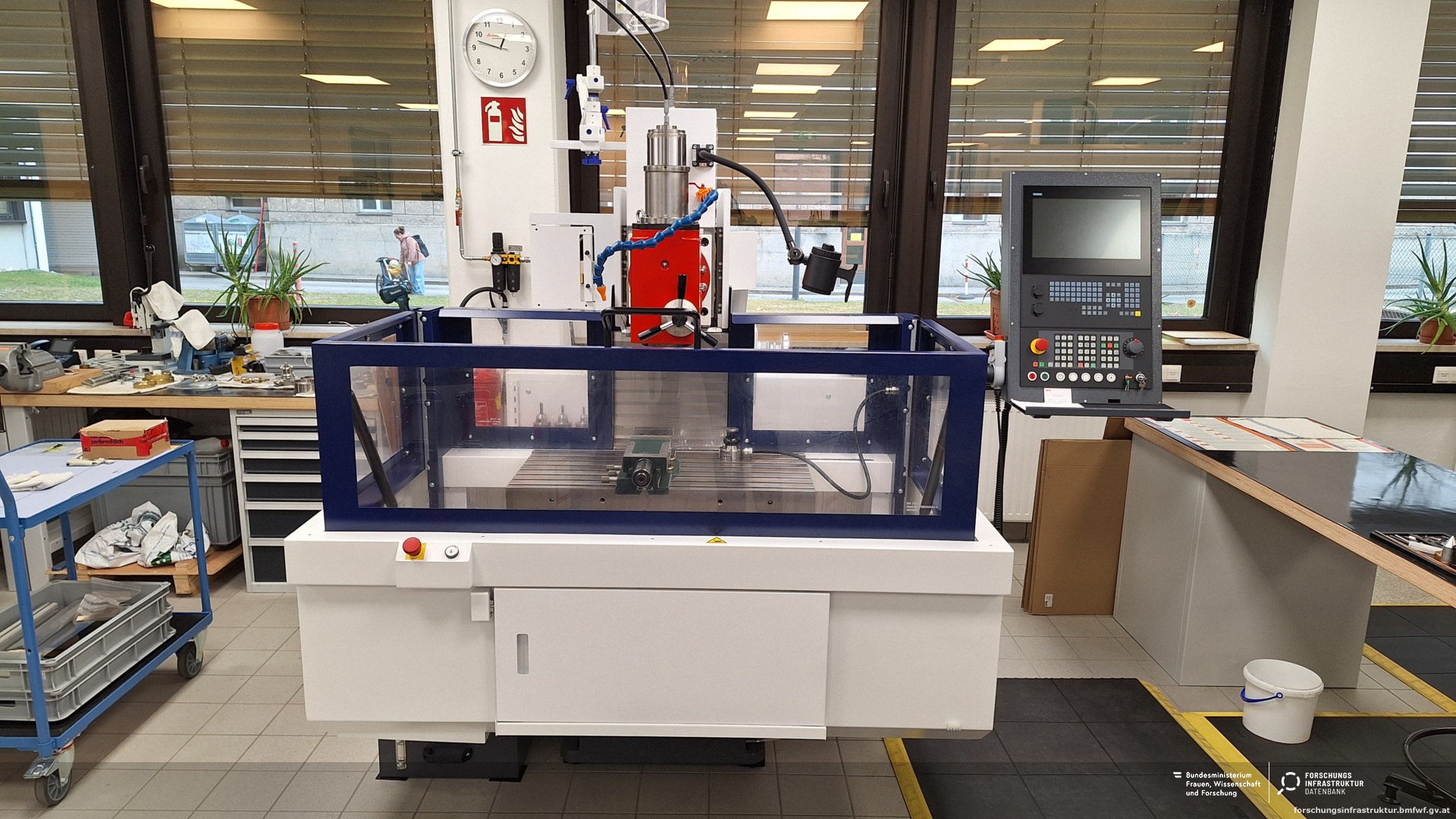 Als Steuerungen kommen unter anderem moderne CNC-Systeme wie Siemens Sinumerik oder Heidenhain zum Einsatz, die sowohl dialoggeführte Programmierung als auch klassische CNC-Programmierung unterstützen.