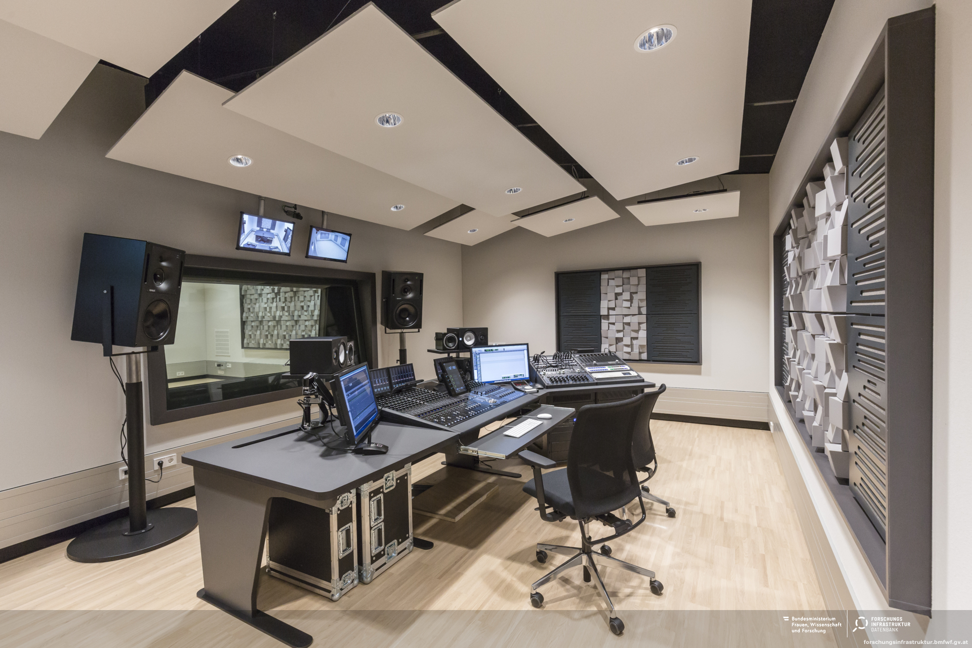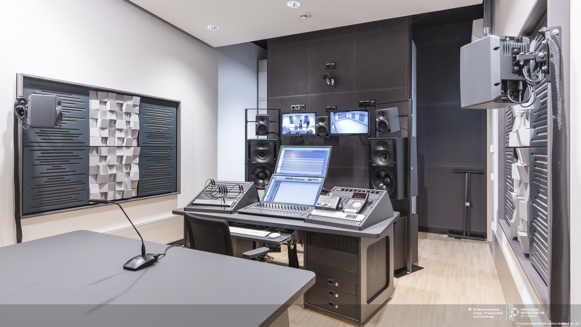 Das Tonstudio ist ausgestattet mit professioneller Technik, ausgewogener Akustik im Aufnahmeraum sowie einem Steinway C-Flügel (Leihgabe der der Familie Gulda). Darüber hinaus sind die beiden Regieräume mittels Audio over IP mit allen öffentlichen Bühnen verbunden. Des Weiteren besteht die Verbindung mit der Videoregie der ABU, um somit Video- und Tonaufzeichnungen mit hohem technischen und künstlerischen Anspruch zu erfüllen.