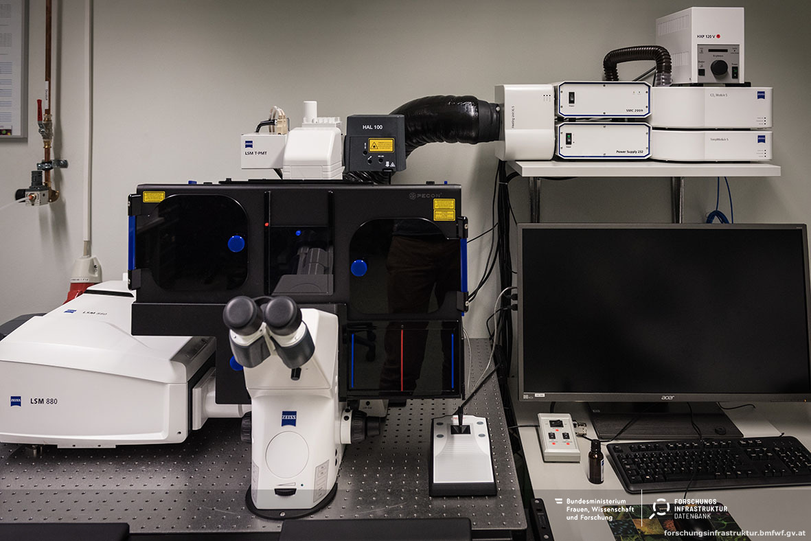 Inverse confocal laser scanning microscope with Airyscan Fast super-resolution technology and incubation chamber for sensitive and fast imaging of fluorescently labeled fixed and live specimens: