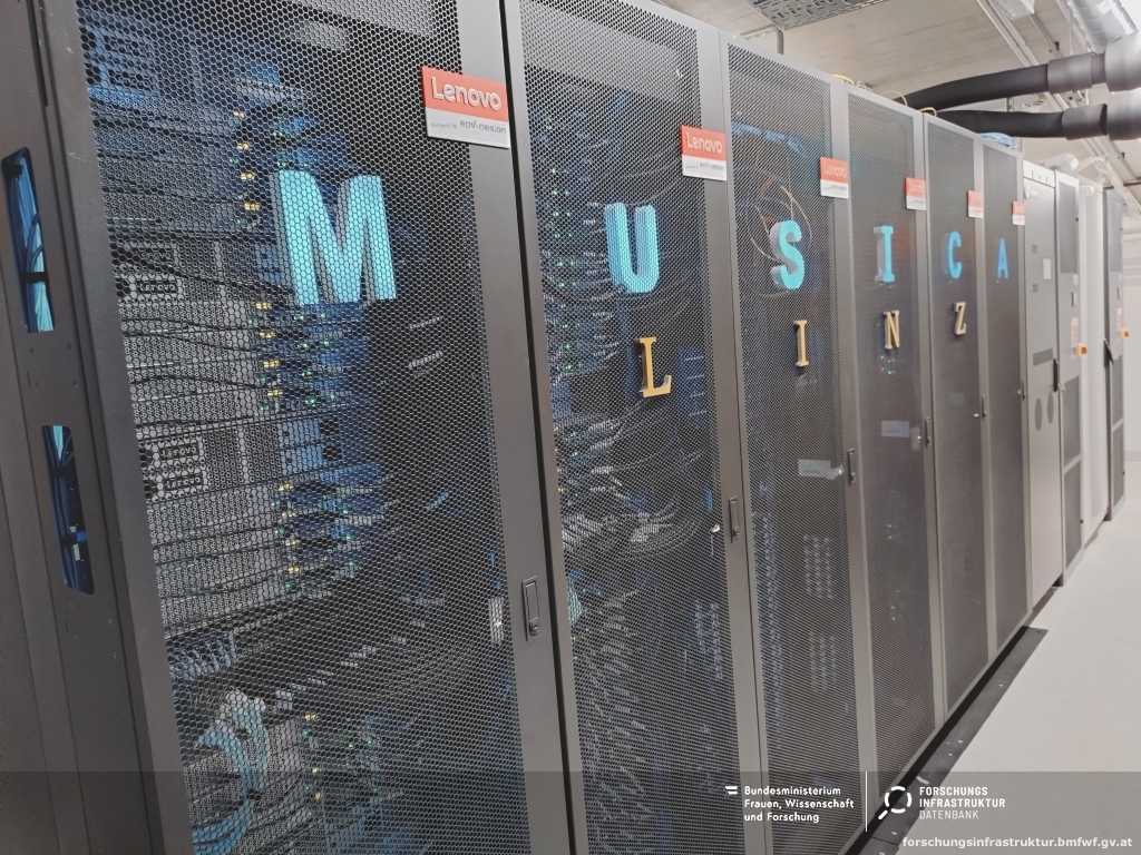 MUSICA ist ein verteilter Hochleistungsrechner an den Standorten Wien, Linz und Innsbruck. An jedem Standort befindet sich ein Rechner-Cluster. Jedes der drei Cluster besteht aus 128 (Wien: 184) einzelnen Rechnern (Knoten). Die einzelnen Rechner verfügen jeweils über 2 AMD-CPUs mit je 96 Kernen und 768 GByte Hauptspeicher. Je 80 (Wien:112) Knoten sind zusätzlich je Knoten mit 4 NVIDIA Hopper H100 GPUs ausgestattet. Insgesamt stehen 84.480 CPU-Kerne und 1088 H100 GPUs zur Verfügung. Die Knoten an einem Standort sind untereinander sowie mit den Filesystemen mit einem Hochleistungsnetz von 400 GBit/sec verbunden. Neben normaler Anbindung an ein Filesystem verfügt jeder Standort über ein Hochleistungsfilesystem mit einer Kapazität von jeweils 4 PByte und einem Durchsatz von etwa 1 TByte/sec. Die Standorte sind untereinander mit einem privaten Netzwerk von 100 Gbit/sec verbunden.