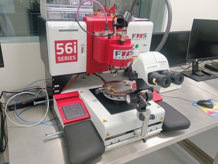 The automatic wire-bonder allows for bonding semiconductor chips. It supports ball and wedge bonding and is equipped with aluminium bond wire.