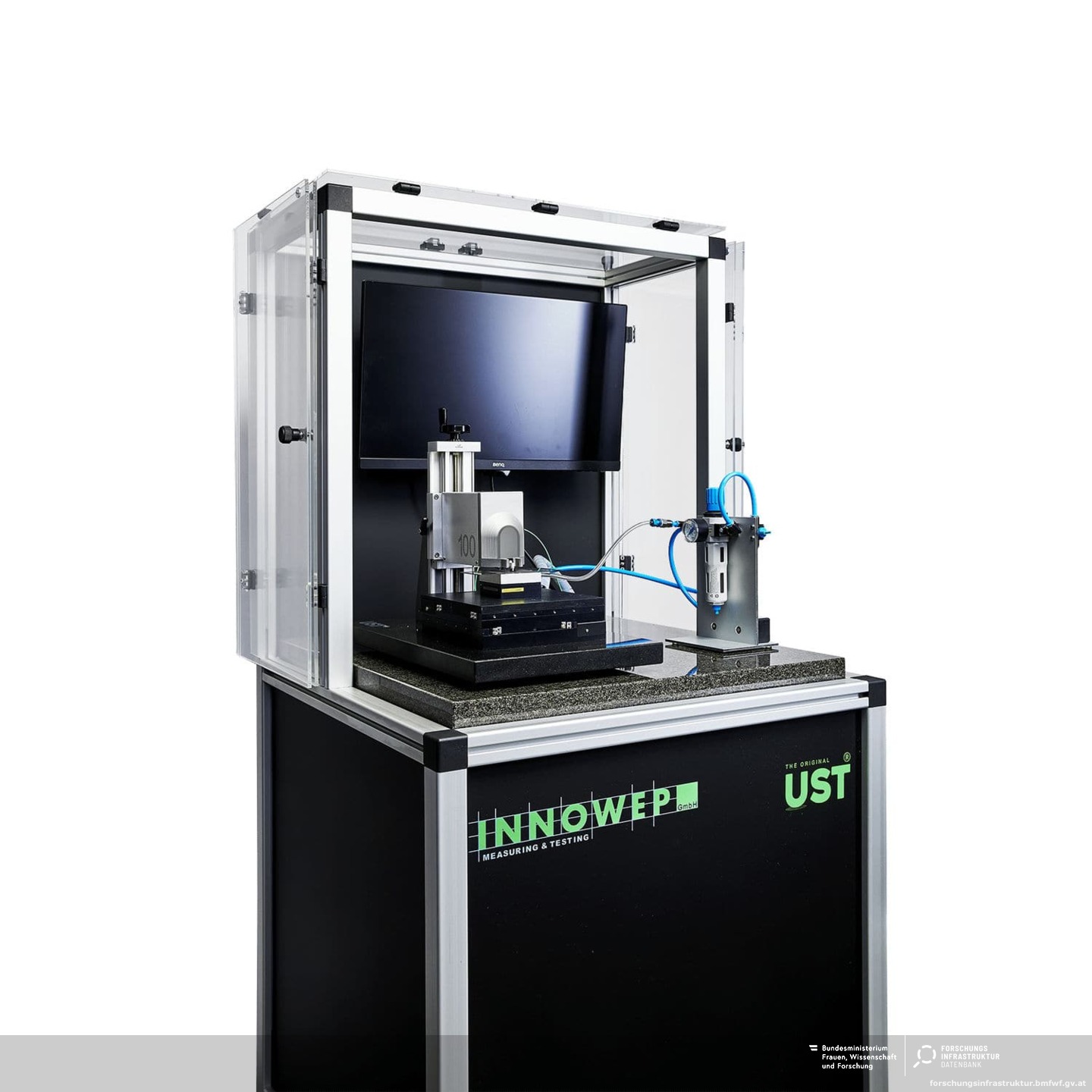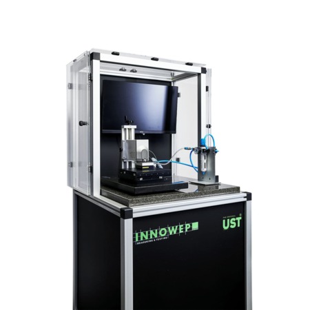 The Universal Surface Tester 100 (UST 100) by Innowep is a modular measurement system designed for the investigation of mechanical and tribological properties of surfaces and thin films. It is used in research and development to analyze friction, wear, scratching, and indentation processes under controlled and reproducible conditions.