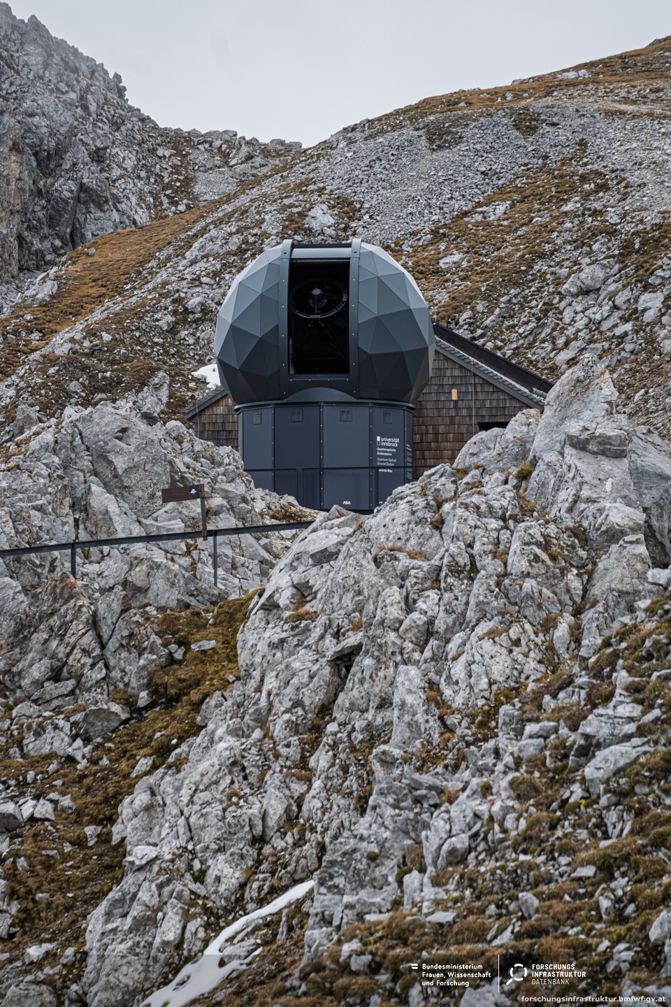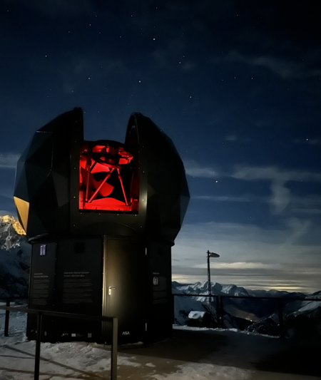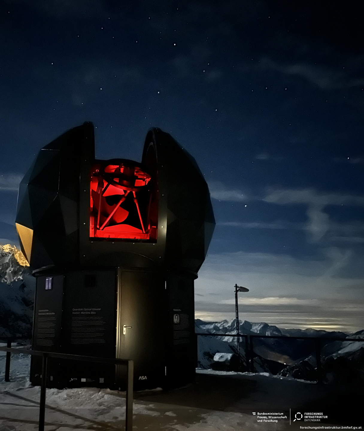 Die Marietta Blau Bodenstation verfügt über ein 1 Meter großes Spiegelteleskop, welches sich zur Quantenkommunikation mit Satelliten nutzen lässt. Präzise Robotik erlaubt Satellitentracking bis nahe an den Zenith und mit Geschwindigkeiten, welche ausreichend sind, für Satelliten in Low-Earth-Orbits (LEO).