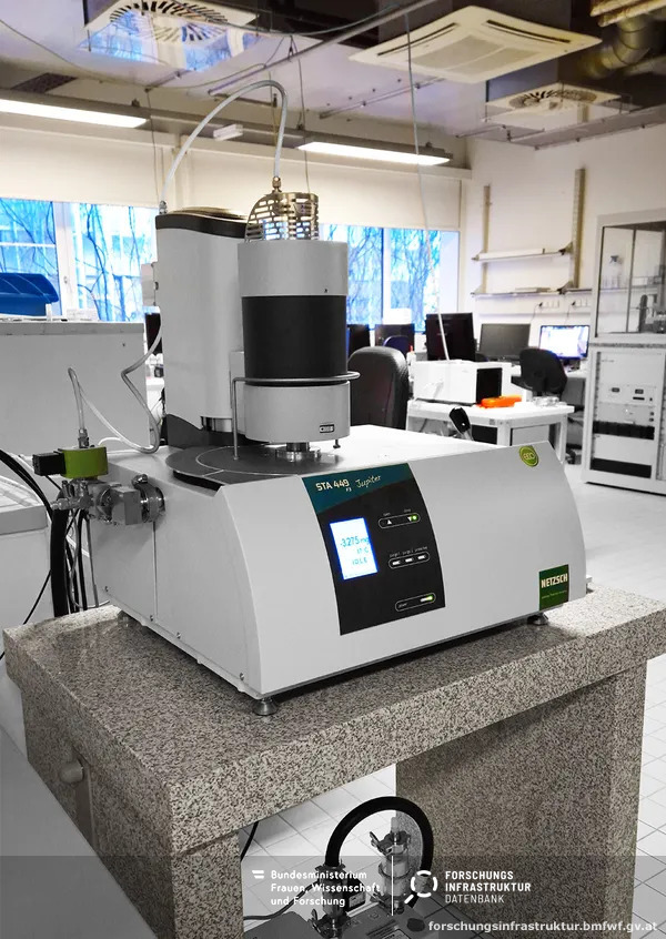 Die zentrale Forschungsinfrastruktur deckt die Methoden TG/TGA, DSC, DTA sowie simultane TG-DSC bzw. TG-DTA ab und kann optional mit Gasanalysesystemen kombiniert werden. Dadurch eignet sie sich besonders zur Untersuchung thermischer Eigenschaften, Phasenübergänge und Zersetzungsprozesse von Materialien.