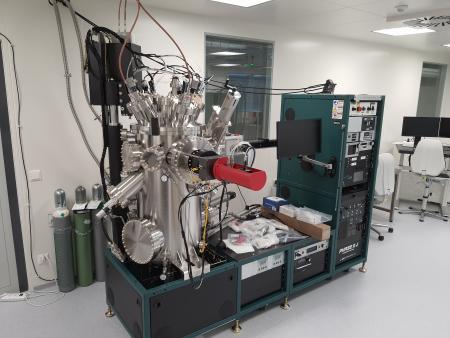 Bei dieser Anlage handelt es sich um eine Ultrahochvakuum-Dünnfilmbeschichtungsanlage zur Abscheidung von dünnen (~100 nm) Schichten verschiedener Materilalien, wie sie zu Herstellung von Mikro- und Nanostrukturen für die Quantenphysik benöigt werden. Ultrahochvakuumkammer zur Verarbeitung oxidationsemfindlicher Materialien. Beschichtung per Elektronenstrahlverdampfung und Sputtern. Möglichkeit der Abscheidung von Nitriden und Oxiden durch reaktives Sputtern. Substratkühlung zur Vermeidung thermischer Degradation von Polymermasken. In-situ Rotation des Substrats zur Verbesserung der Schichthomogenität. Argon-Ionenquelle zur in-situ Plasmareinigung von Substraten.