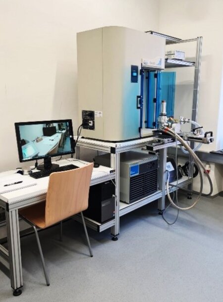 Hochdrucksorptionsgerät zur Charakterisierung poröser Feststoffe und zur Bewertung ihrer Gasspeicherkapazitäten bis zu einem Druck von 100 bar bei Temperaturen von 20 K bis Raumtemperatur.
