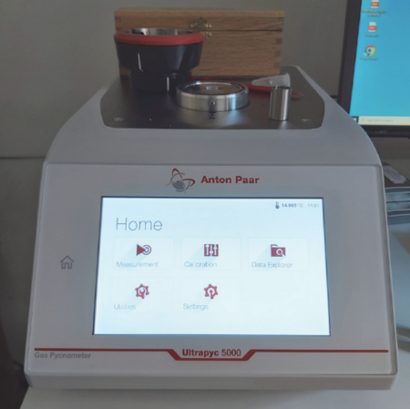 Bestimmung der Skelettdichte von porösen Festkörpern, insbesondere Kohlenstoffen in unterschiedlichen makroskopischen Formen: Monolithen, Pellets, Pulver,... mithilfe von Helium Pyknometrie