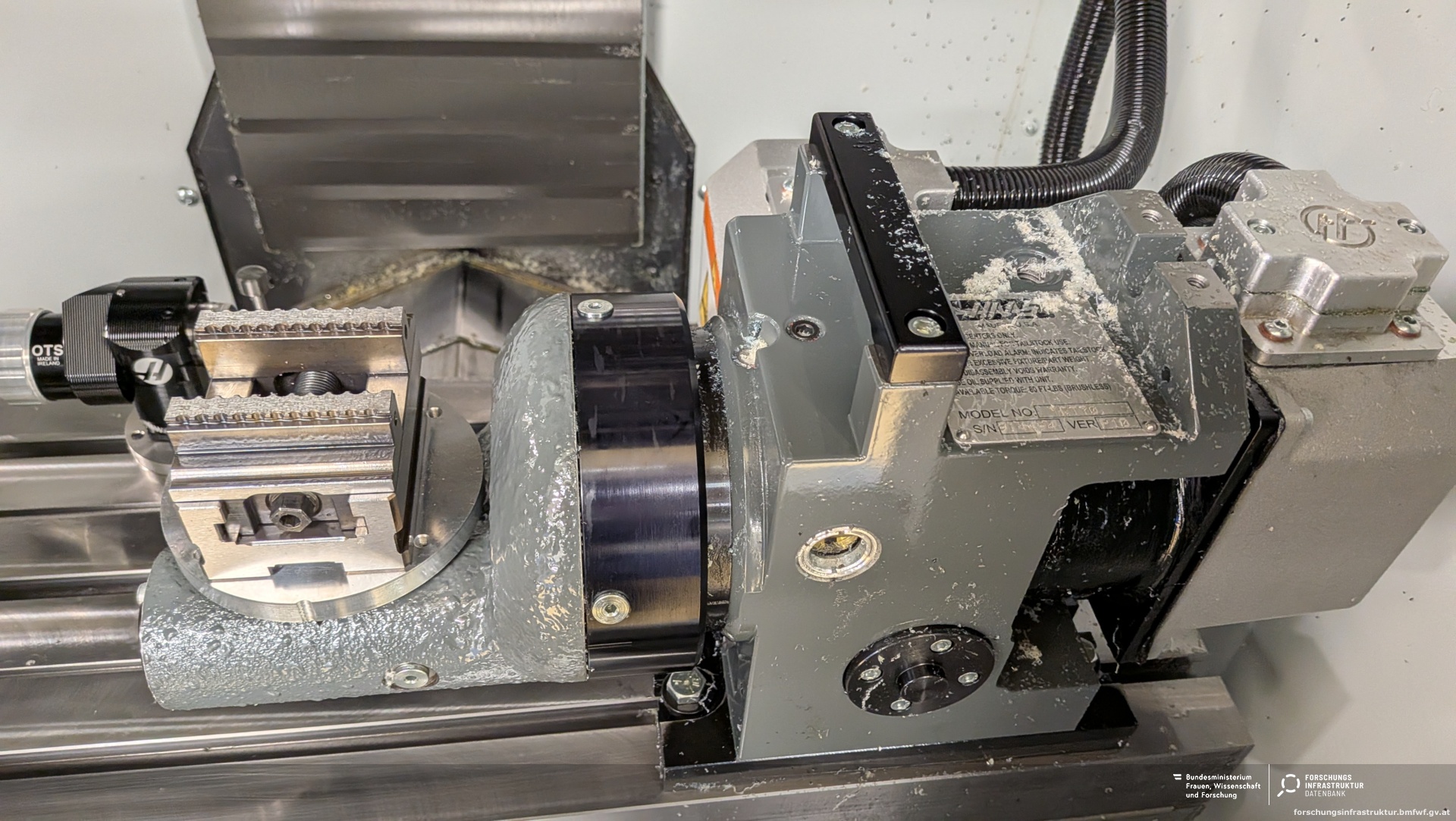 Technische Kerndaten: Verfahrwege ca. 305 × 254 × 356 mm, Spindelleistung etwa 3,7 kW (5 hp) mit max. 30 000 U/min, ISO 20 Werkzeugaufnahme und ein 20-fach Werkzeugwechsler. Die Maschine unterstützt Hochgeschwindigkeitsbearbeitung und verfügt über Optionen für Dreh-/Schwenk-Tische, um 5 Achsen ähnliche Bearbeitungen zu ermöglichen.