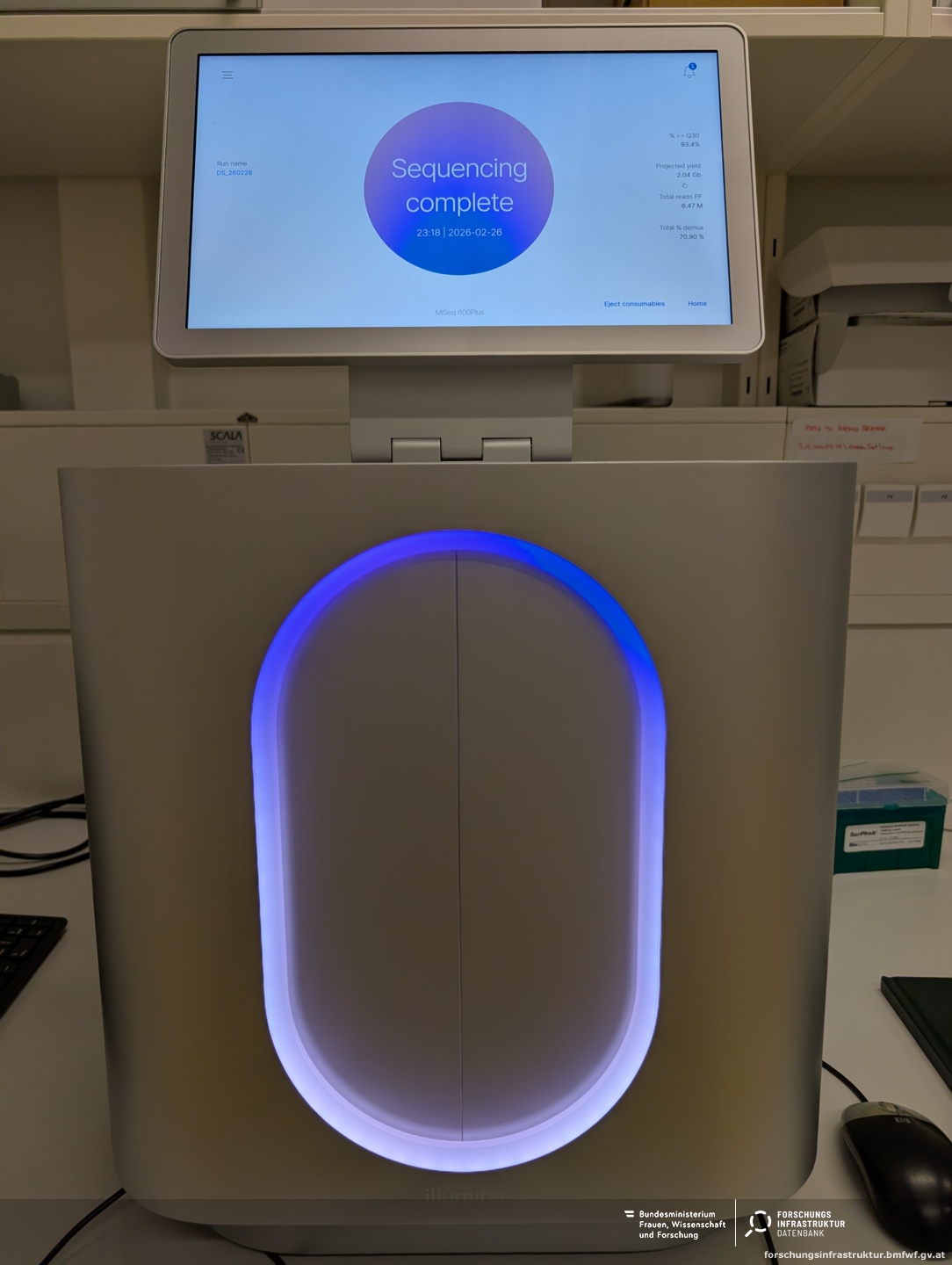 Die Plattform ist besonders geeignet für Anwendungen wie: Targeted Sequencing Panels, Amplicon-Sequenzierung (z. B. 16S/ITS-Profiling), Sequenzierung kleiner Genome (Bakterien, Viren), Plasmid- und CRISPR-Validierung, Metagenomische Analysen. Durch integrierte Analysefunktionen, vereinfachte Workflow-Schritte und Reagenzien, die bei Raumtemperatur gelagert werden können, ermöglicht das System eine besonders benutzerfreundliche und effiziente Durchführung von Sequenzierungsprojekten. Das MiSeq i100 Plus erweitert damit die Sequenzierungskapazitäten der Einrichtung insbesondere für schnelle, flexible und kosteneffiziente Projekte mit moderatem Durchsatz.