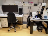 Das Leica TCS SP8 LIGHTNING Konfokalmikroskop ist ein konfokales Laser-Scanning-Mikroskop zur hochauflösenden Fluoreszenzmikroskopie. Es scannt Proben mit einem Laser Punkt für Punkt und erzeugt kontrastreiche 2D- und 3D-Bilder mit sehr hoher Auflösung. Aufgrund der technischen Eigenschaften, ist das Mikroskop für Fluoreszenz-Multiplexing geeignet, indem bis zu 7 unterschiedliche Fluoreszenz-Marker innerhalb derselben Probe während eines Messvorgangs aufgenommen werden können.