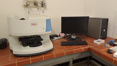 Nicolet iN10 MX Infrarot Imaging Mikroskop (Thermo Fischer Scientific, USA) mit Thermo Scientific OMNIC Picta Software. Ausgestattet mit gekühltem MCT-Linear-Array-Detektor und ultraschnellem MX-Bildgebungsdetektor, Betrieb im Absorptions-, Transmissions- und ATR-Modus, Spektralbereich 4000-720 cm-1, Apertur 25 μm, spektrale Auflösung 8 cm-1 und räumliche Auflösung <10 μm.