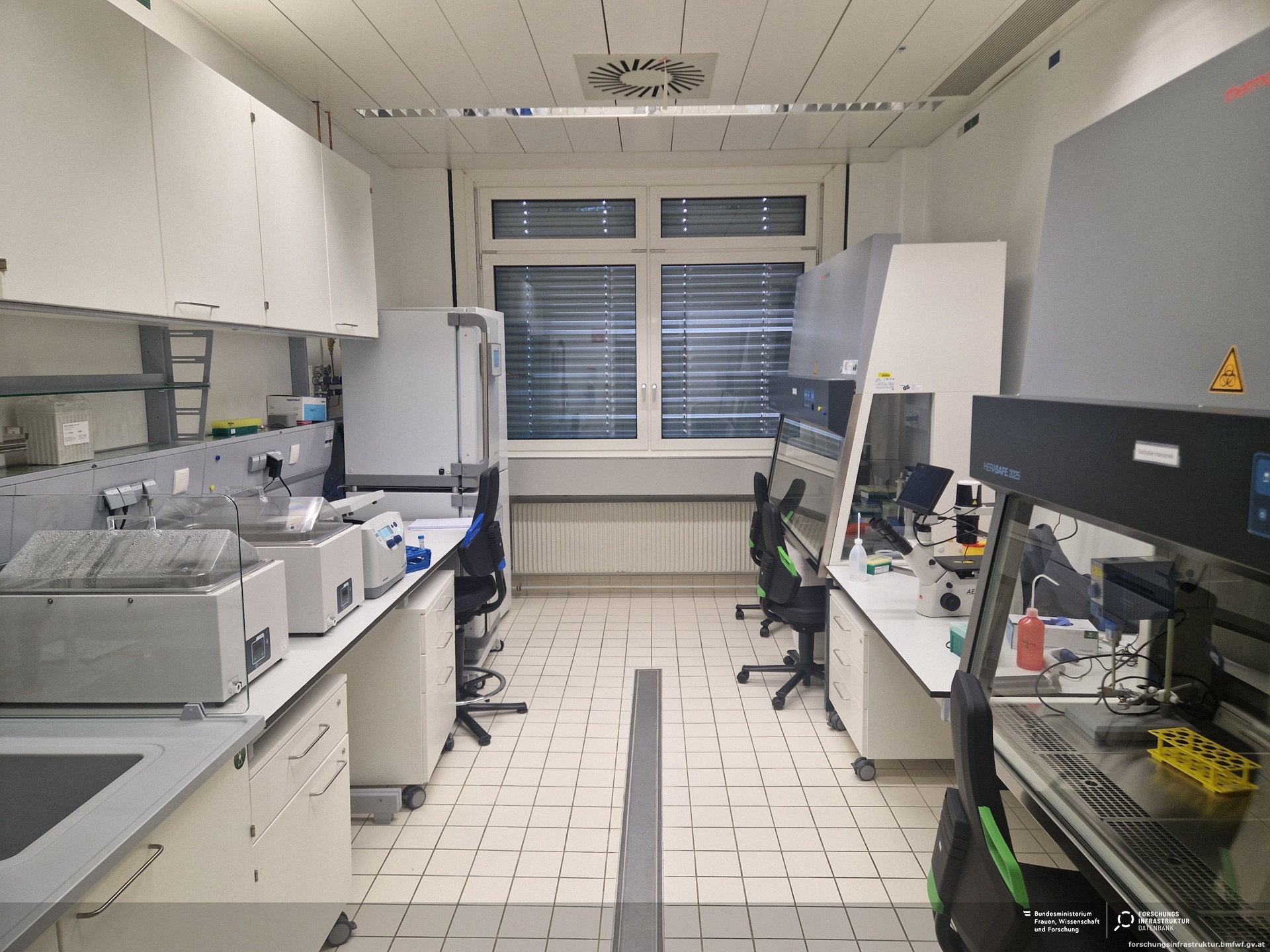 Forschenden werden neue state-of-the-art Zellkulturlabore zur Verfügung gestellt. In drei vollausgestatteten Zellkultur-Räumen können Zellen kultiviert werden, in einem zusätzlichen Isolationslabor können frisch gewonnene Zellen vor Ort weiterverarbeitet werden. Ergänzt werden die Labore durch begleitende Räume wie Lager, Geräteräume, Waschküche, etc. Auch Einzelgeräte wie ein Maestro TrayZ Impedanzmesssystem für Echtzeit-Zellkulturanalysen und ein Neon NxT Elektroporationsgerät stehen zur Verfügung. Somit besteht eine ideale Umgebung für experimentelles Arbeiten mit einer Vielzahl an Geräten, um unterschiedliche Forschungsvorhaben bestmöglich zu unterstützen.