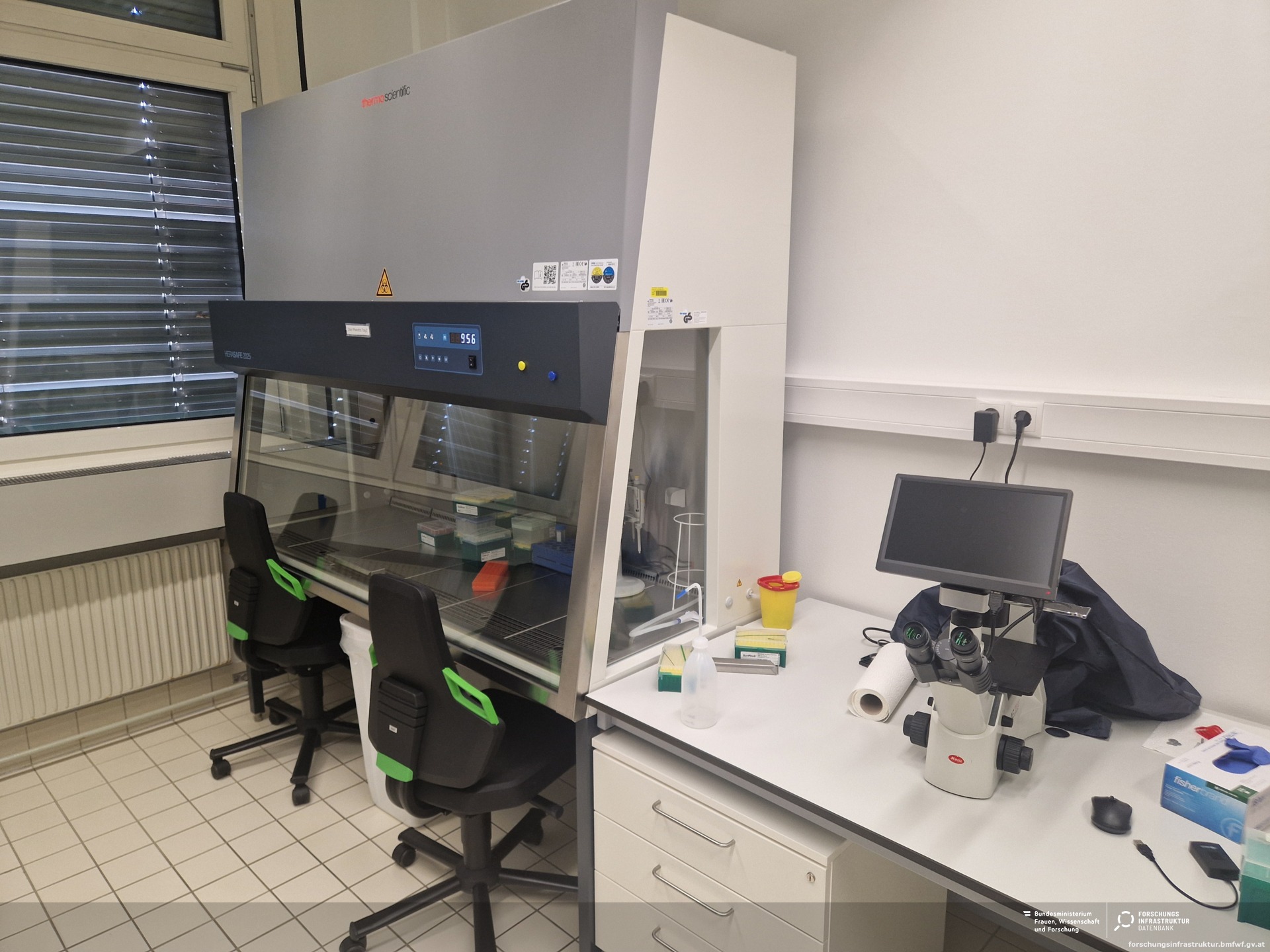Die Zellkulturräume werden im Selfservice‑Modus bereitgestellt. Nach entsprechender Schulung können die Räume samt Geräten und die erforderliche Begleitinfrastruktur von Vetmeduni internen und externen Forschenden selbstständig betrieben werden.