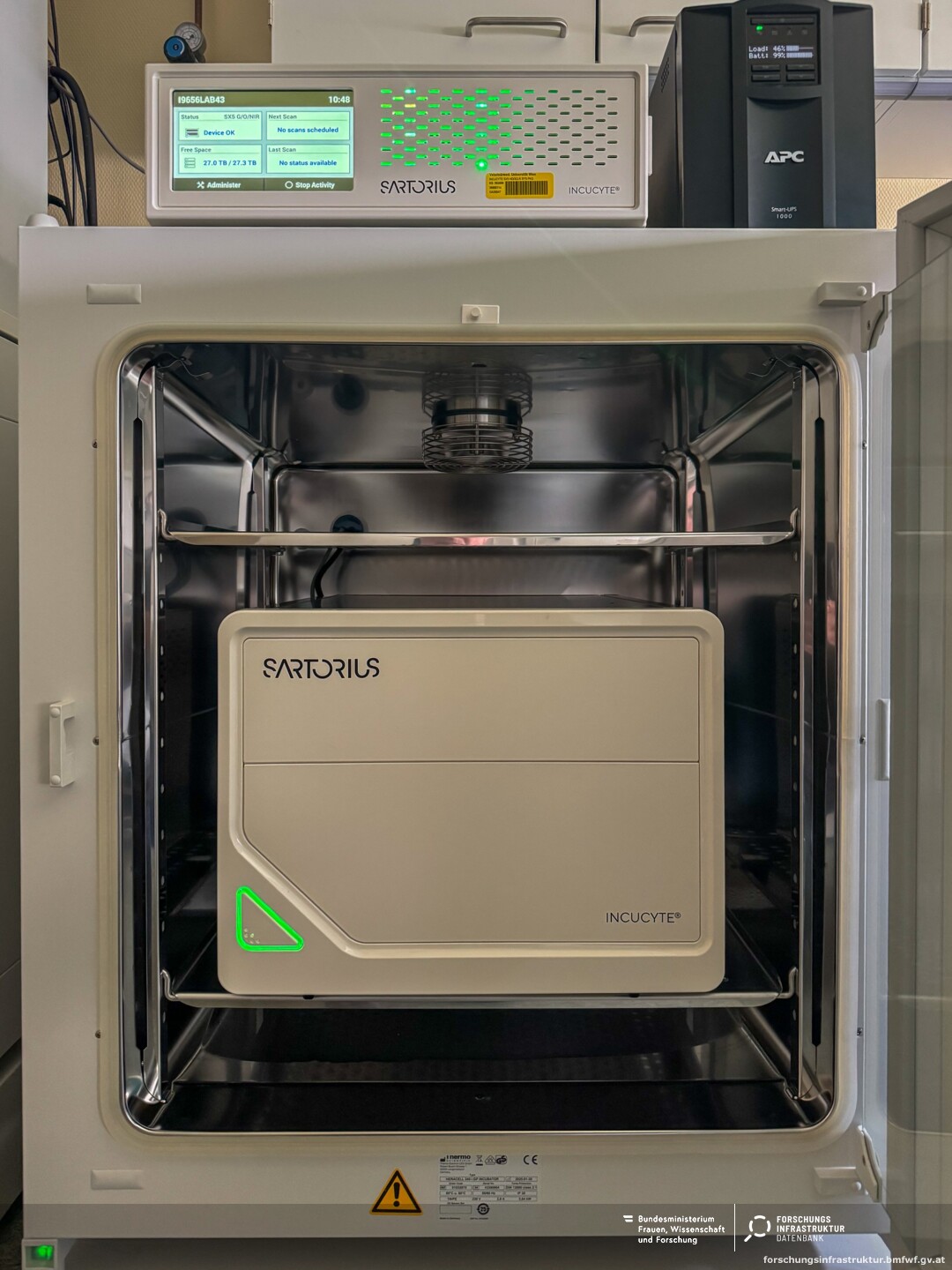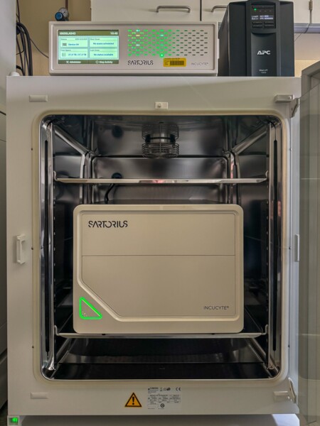 Live-cell imager inside a standard incubator for non-invasive, real-time monitoring of cell cultures and quantitative assays of cell health, viability, migration, and invasion.