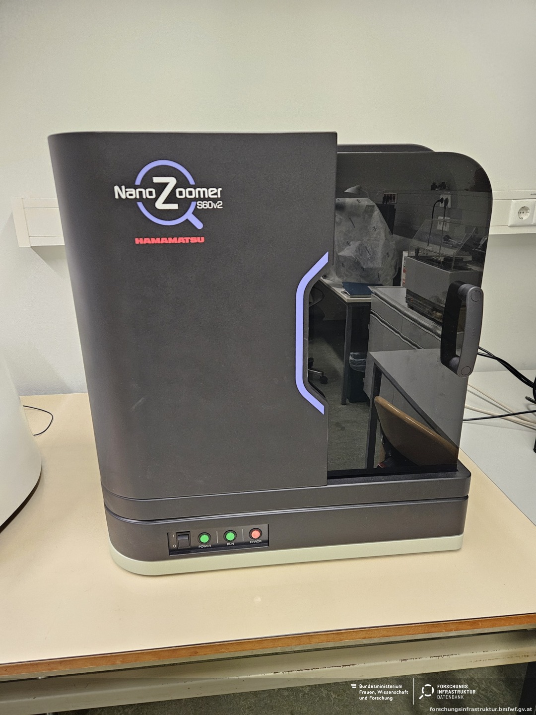 The NanoZoomer S60 whole-slide image scanner from Hamamatsu enables the digitization of microscopic sections. The resulting digital images (file format: .ndpi) can be viewed with suitable viewing software and used for computer-aided analysis.