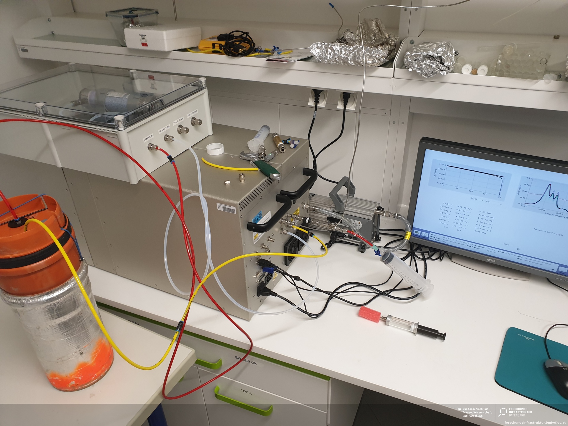 Messung von N20 Isotopomeren. Die LTWER Core Facility kann Messungen übernehmen als auch Personal für die Verwendung des Gerätes zur selbstständigen Durchführung von Messungen schulen.